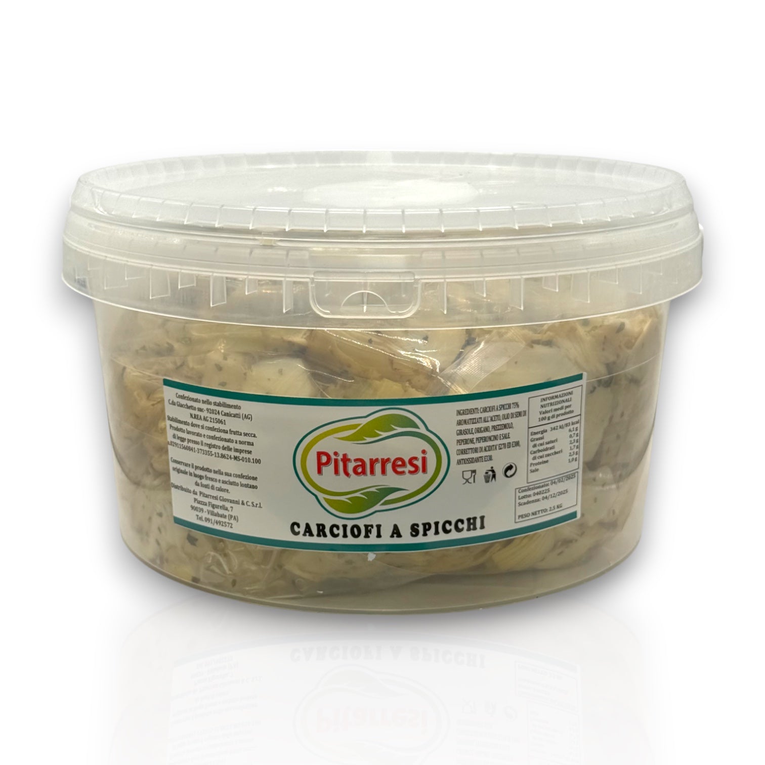 IngredientiCarciofi a spicchi 75%, aromatizzati all’aceto, olio di semi di girasole, origano, prezzemolo, peperone, peperoncino, sale.