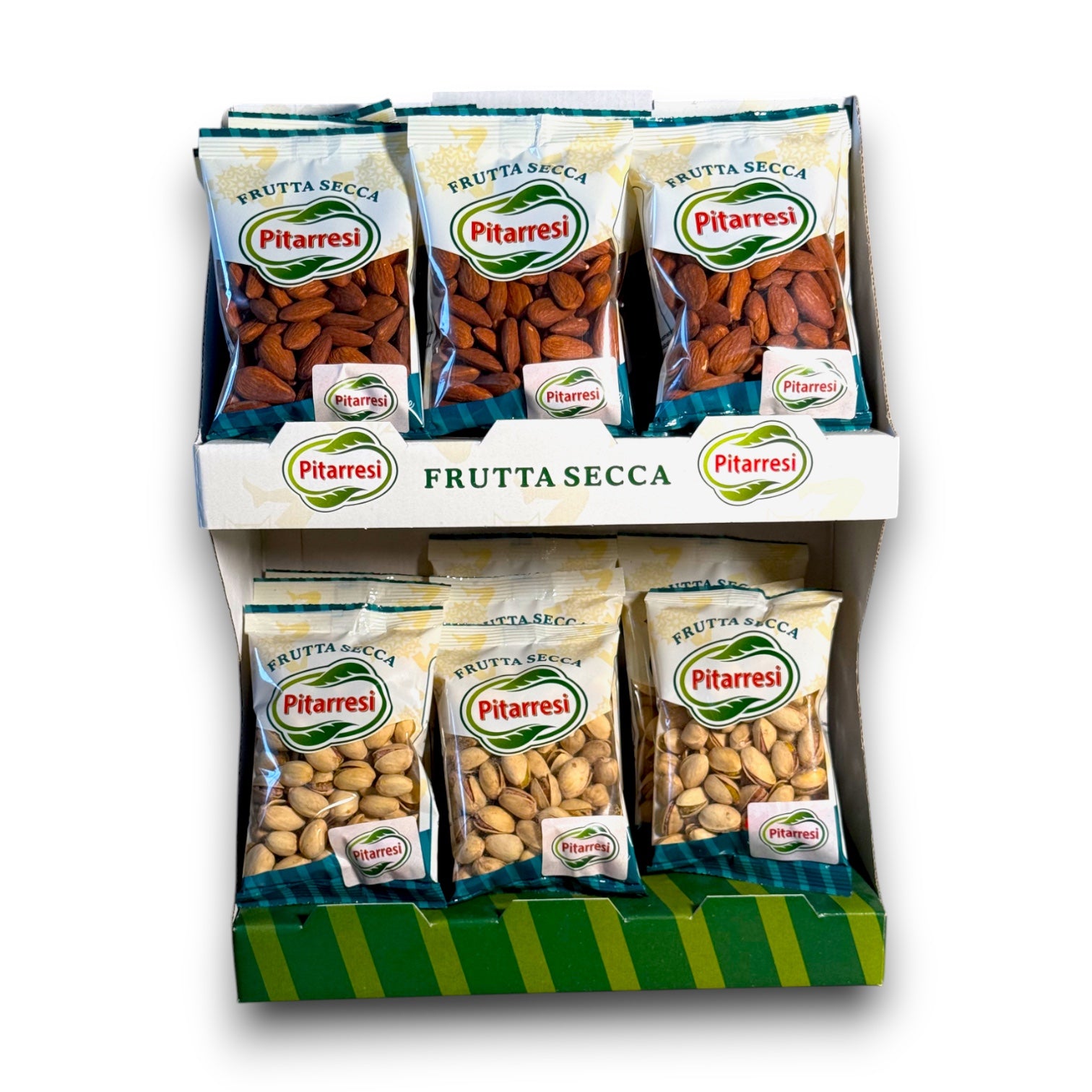 Il nostro espositore da 24 pezzi da 100g propone una selezione di frutta secca di alta qualità, perfetta per chi cerca uno snack sano, nutriente e pronto da gustare, un’esplosione di gusto e benessere in ogni confezione!