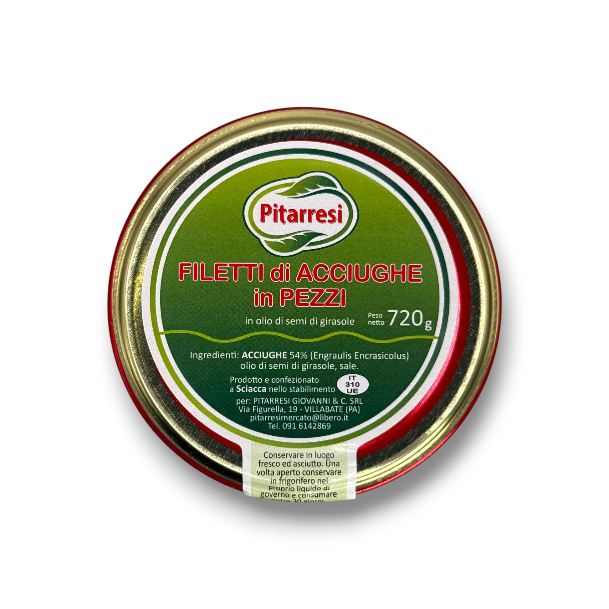 IngredientiAcciughe 54% (Engraulis Encrasicolus), olio di semi di girasole, sale.