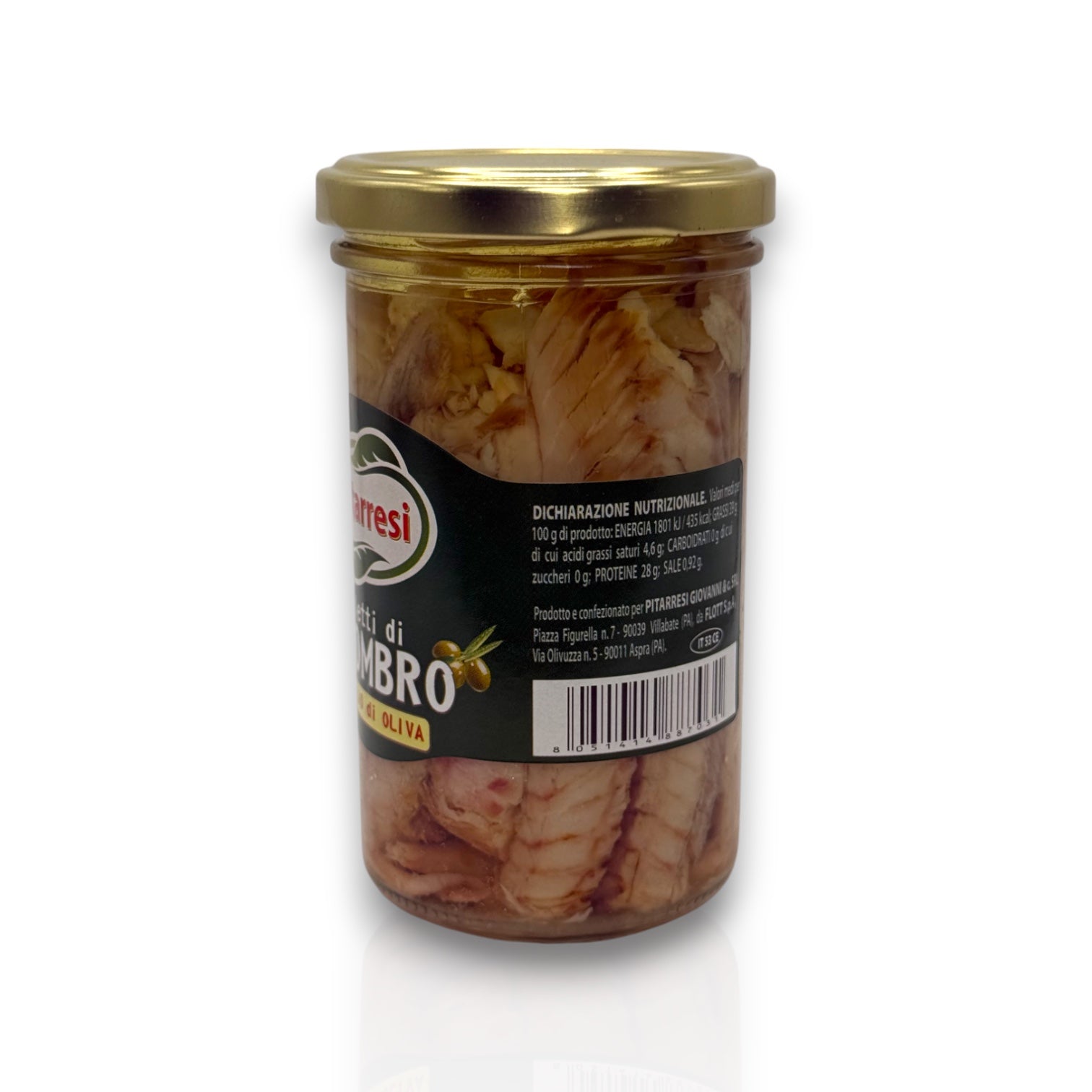 I nostri filetti di sgombro Siciliani sono selezionati con attenzione, lavorati a mano e conservati in pregiato olio d’oliva per esaltarne il sapore naturale e mantenerne la morbidezza. Un prodotto genuino e ricco di gusto, ideale per chi ama il sapore autentico del mare.
