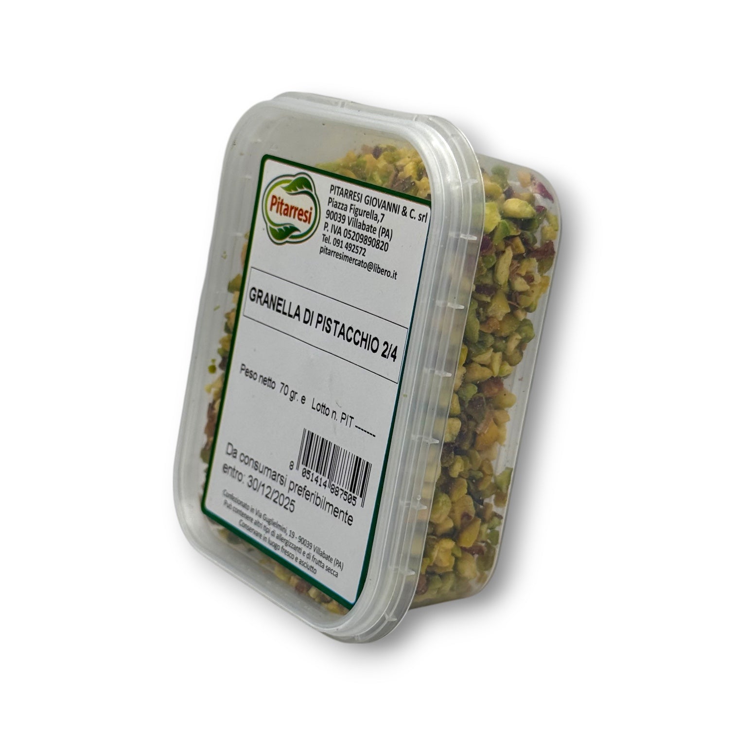 La nostra granella di pistacchio è ottenuta da pistacchi di alta qualità, accuratamente tritati per garantire una consistenza croccante e un sapore intenso. Perfetta per arricchire dolci, gelati, creme, primi piatti e secondi gourmet, dona un tocco di raffinatezza a ogni ricetta.