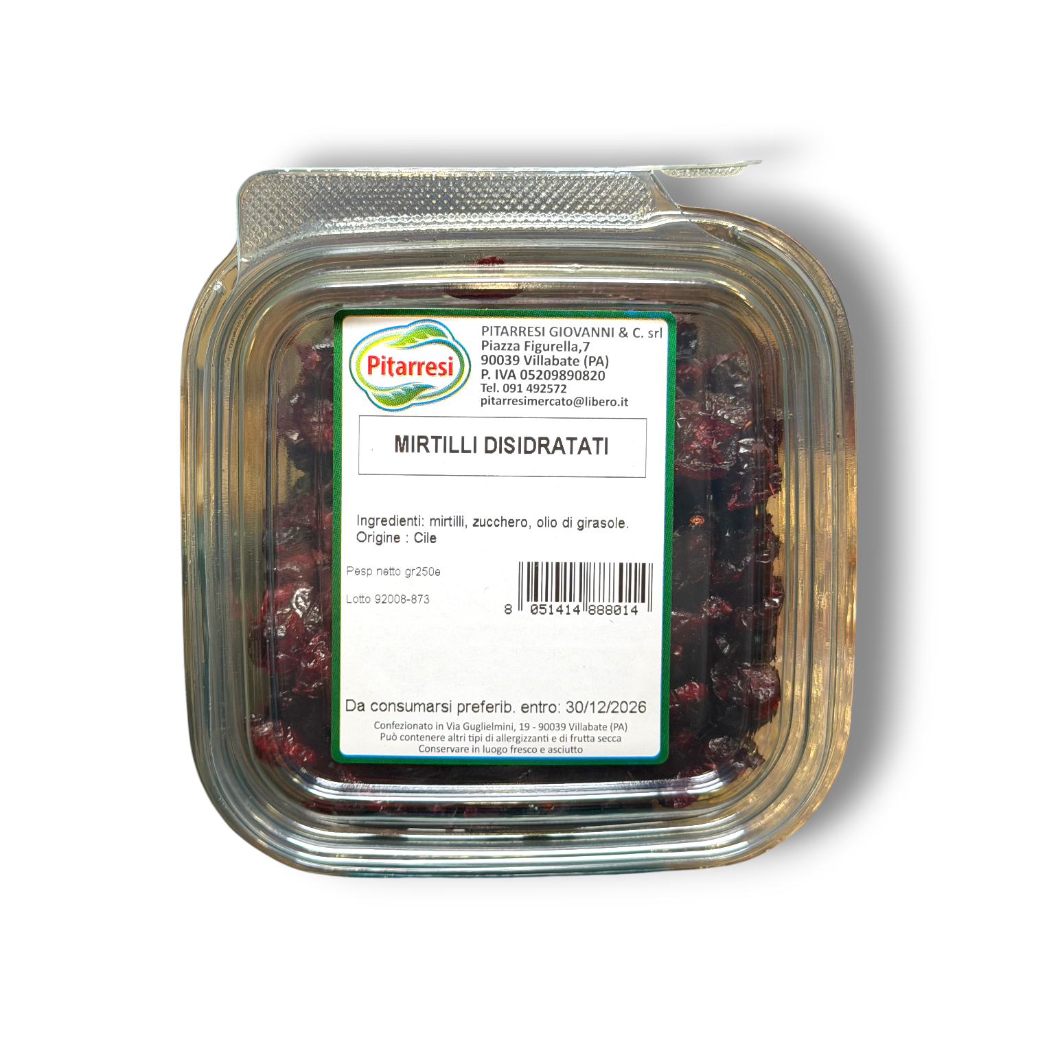 ✅ Mirtilli disidratati con aggiunta di zucchero e olio di girasole