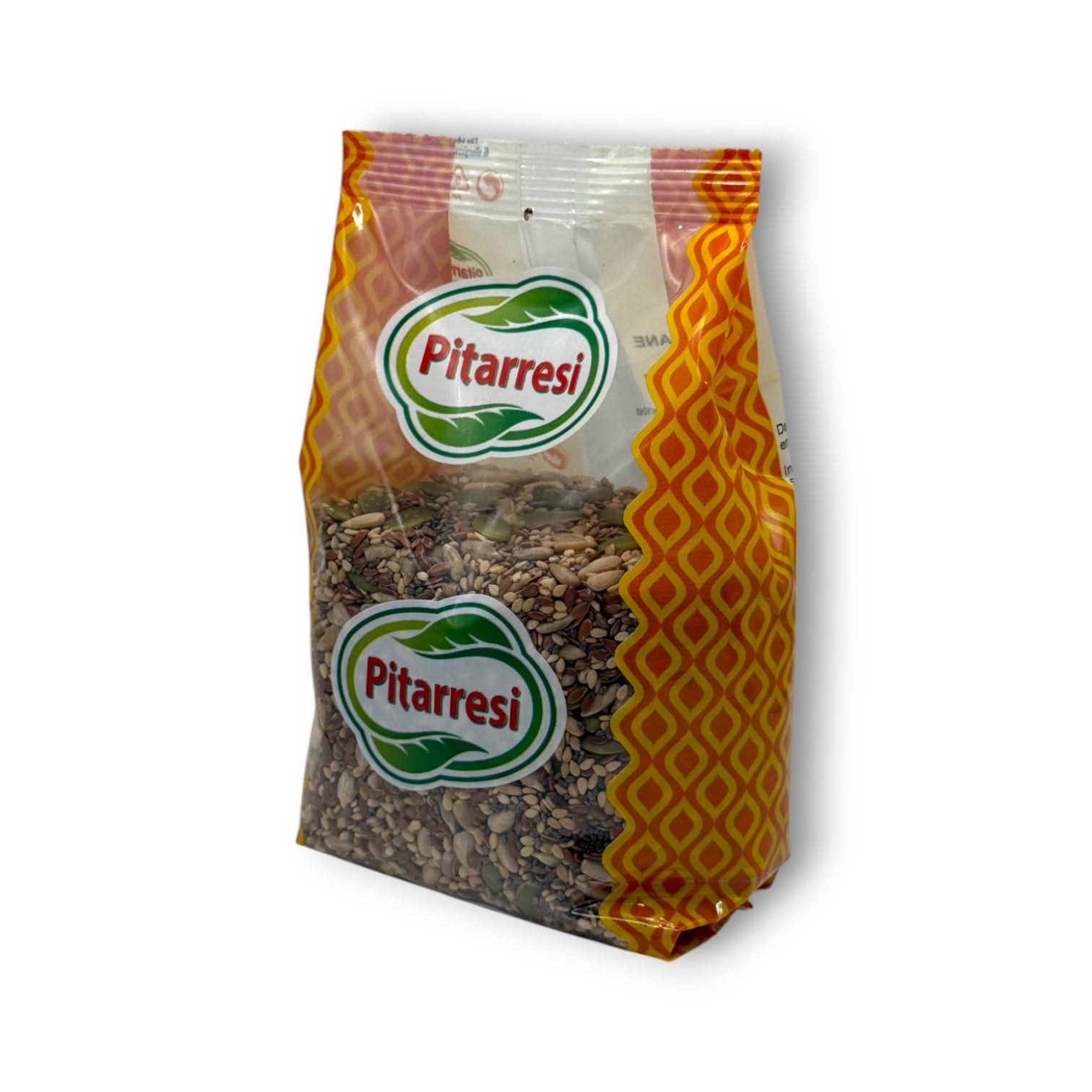 IngredientiSemi di lino, semi di zucca decorticati, semi di girasole decorticati, semi di chia neri, semi di sesamo bianco.