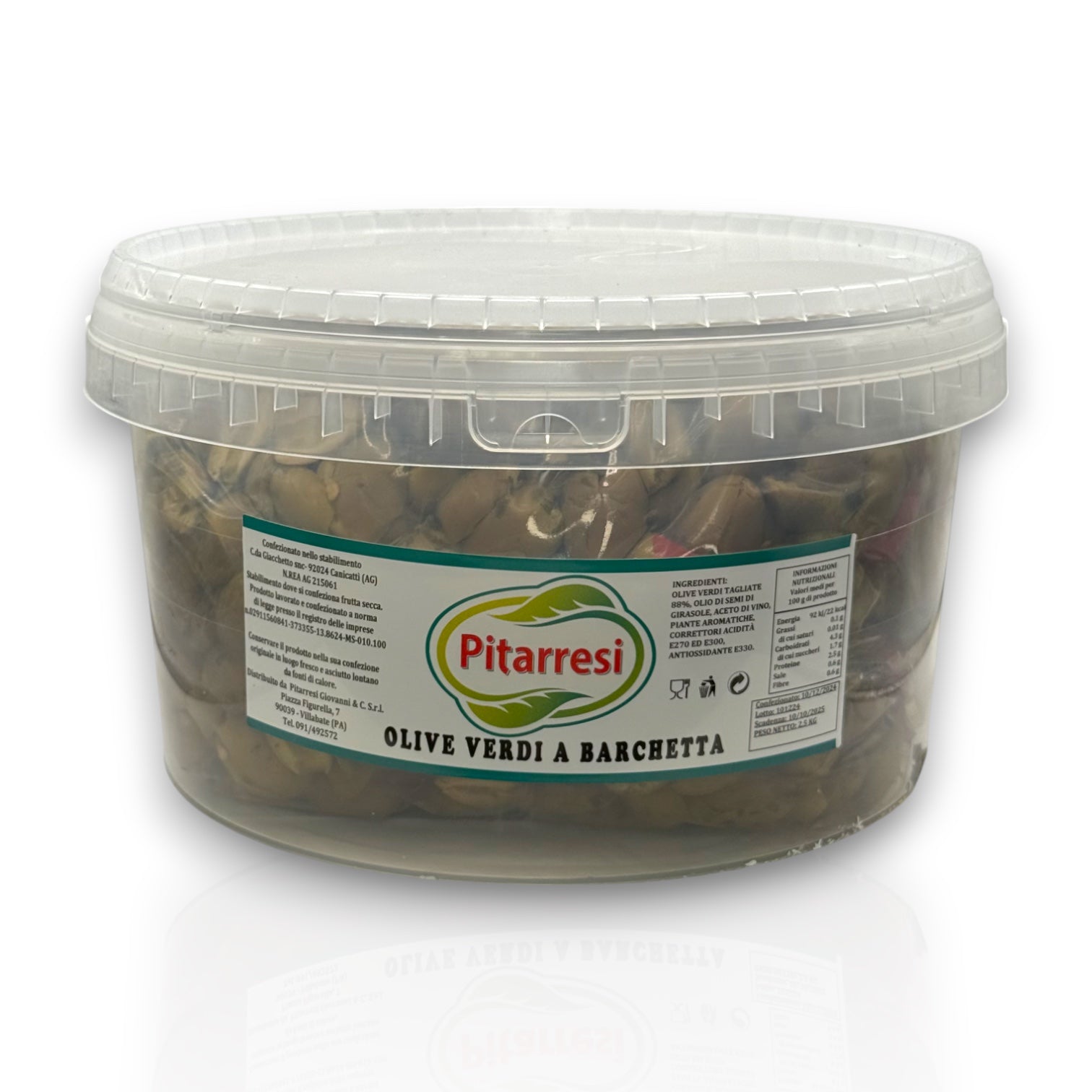 Le nostre olive verdi a barchetta sono snocciolate e incise per esaltarne il sapore pieno e la consistenza soda. Perfette per aperitivi, contorni o piatti mediterranei, aggiungono un tocco deciso e saporito a ogni preparazione.