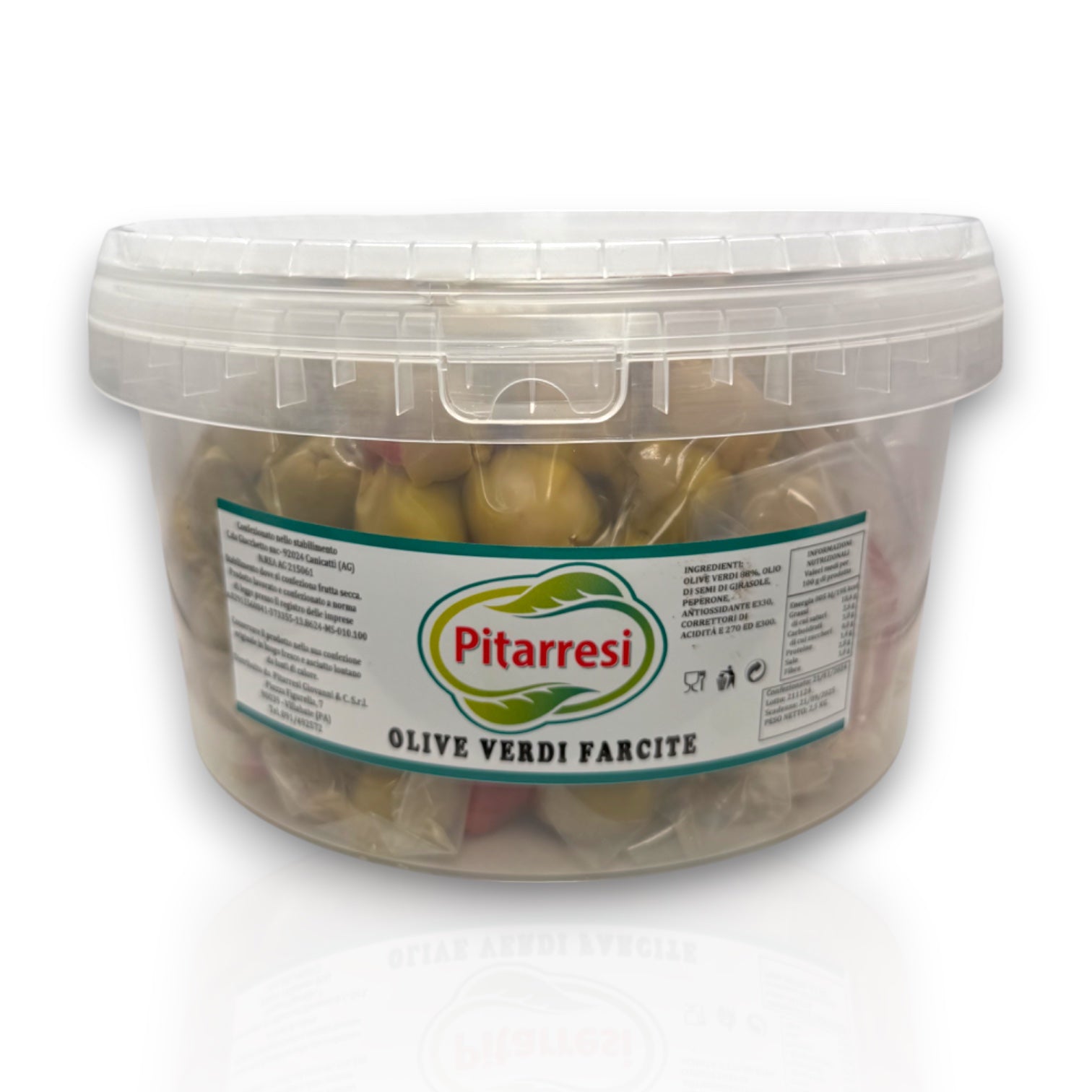 Le nostre olive verdi farcite sono un delizioso antipasto pronto da gustare, farcite con ingredienti selezionati che ne esaltano il sapore naturale. Perfette per aperitivi, buffet o come accompagnamento a piatti mediterranei.