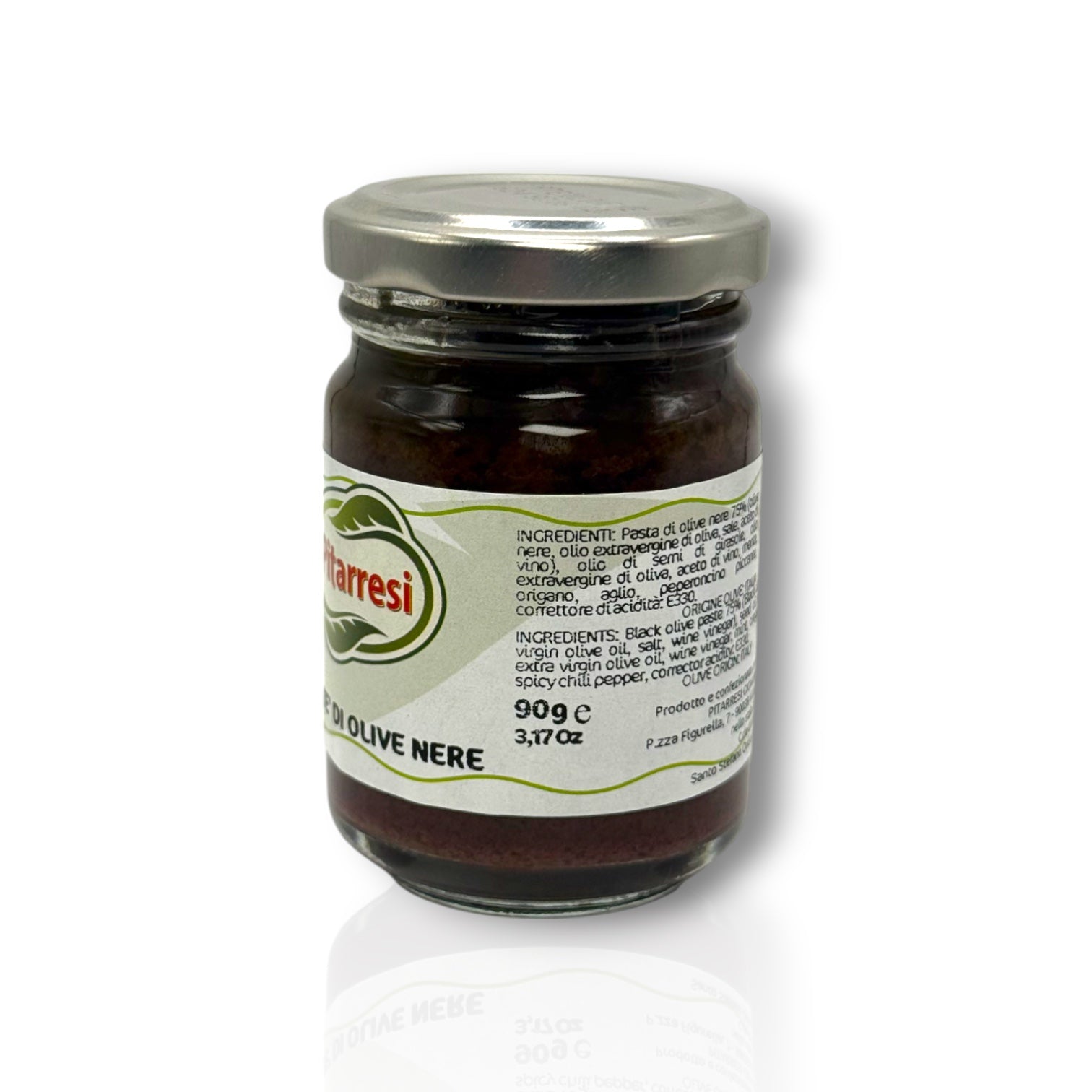 IngredientiPasta di olive nere 75% (olive nere, olio extravergine di oliva, sale, aceto di vino), olio di semi di girasole, olio extravergine di oliva, aceto di vino, menta, aglio, peperoncino piccante, correttore di acidità: E330.