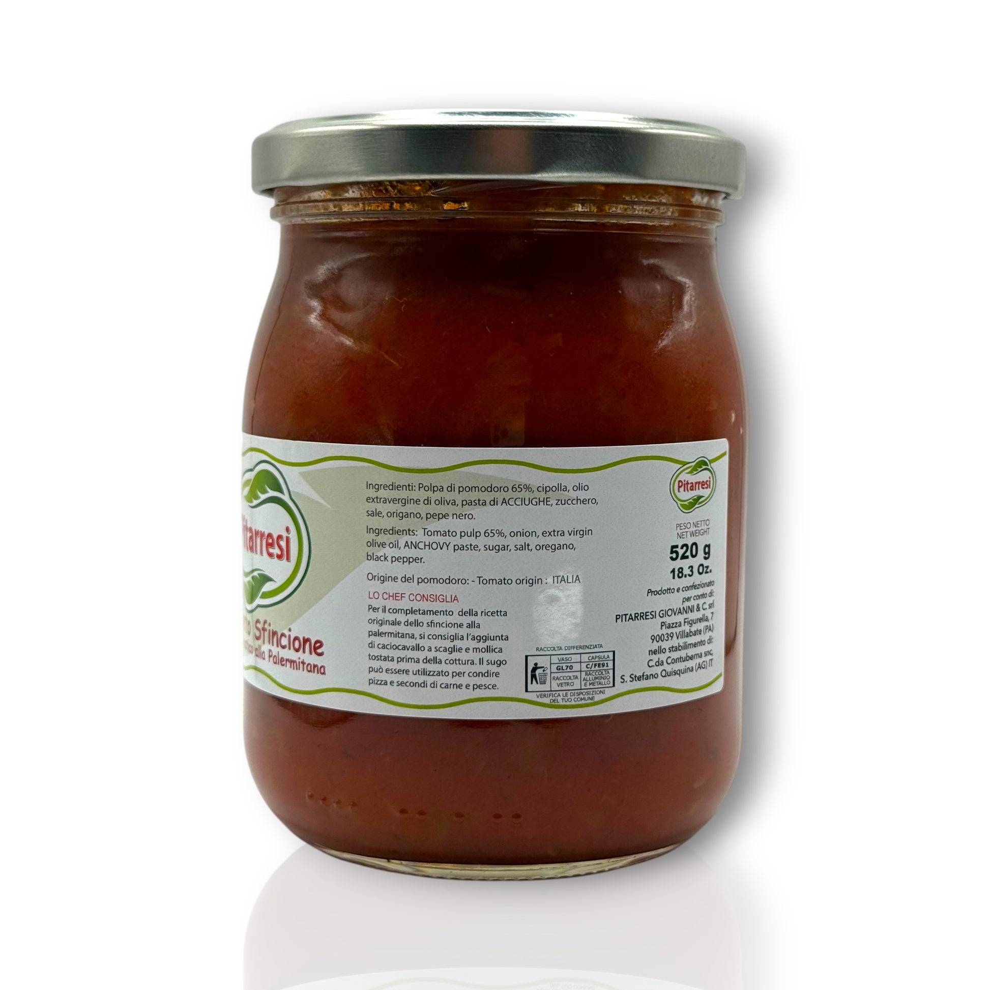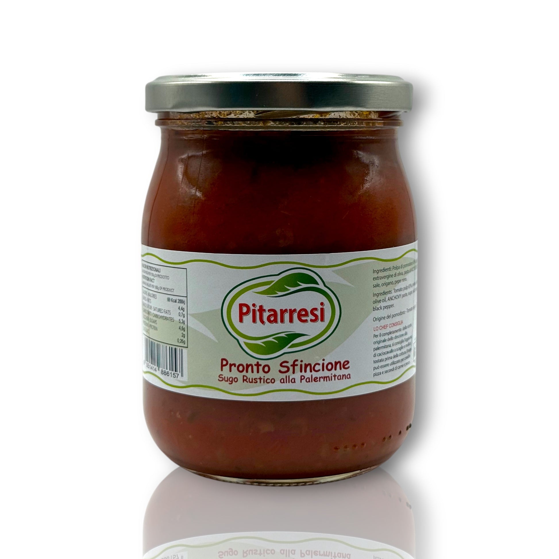 Il nostro pronto sfincione è la base perfetta per preparare, in pochi minuti, una delle specialità più amate della tradizione Palermitana. Un sugo rustico, ricco e saporito, realizzato secondo la ricetta originale, con pomodoro, cipolla, olio extravergine d’oliva e un mix di aromi selezionati.