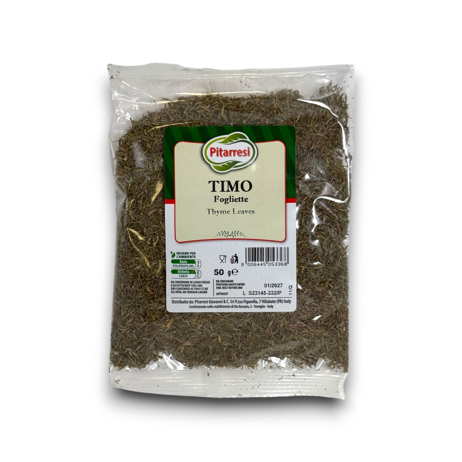 Il timo in fogliette è una delle erbe aromatiche più versatili della cucina mediterranea, con un profumo intenso e un sapore leggermente pungente. Perfetto per insaporire carni, verdure, legumi e piatti al forno, dona un tocco rustico e autentico a ogni ricetta.